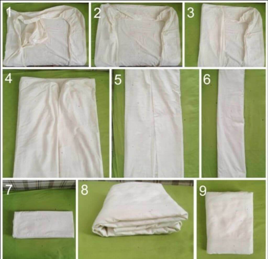Остается придать компактный вид простыне, чтобы убрать ее в шкаф. Будьте уверены, так она не помнется.