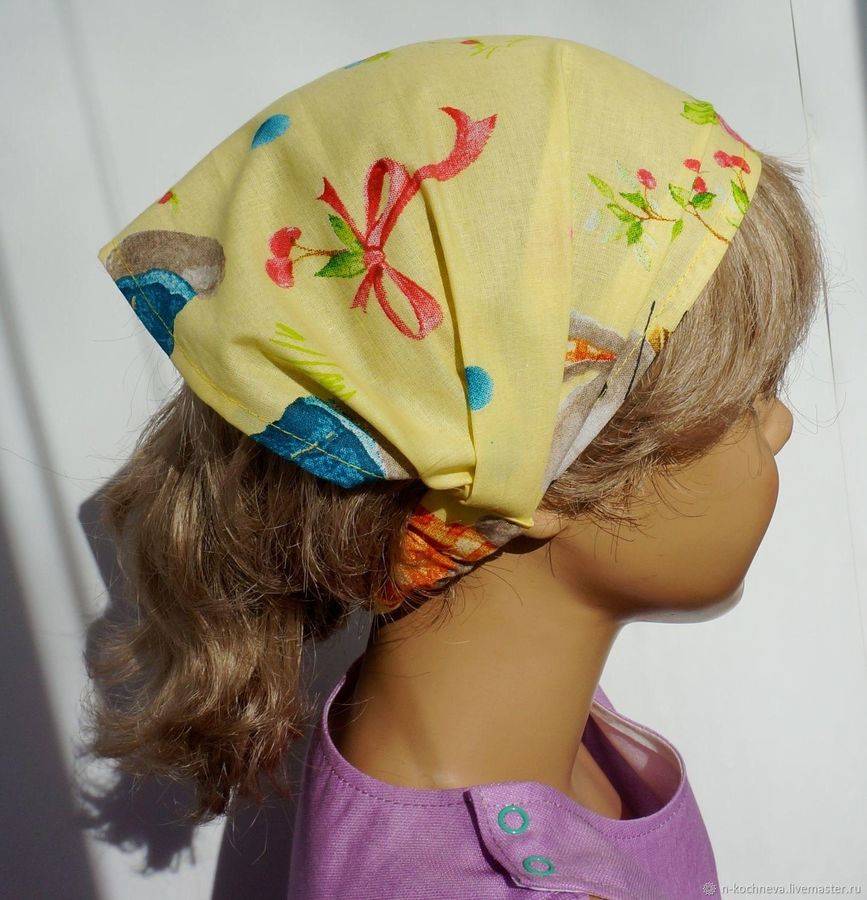Оригинальный и простой в изготовлении головной убор отлично защитит от солнца голову ребенка. Бандану для мальчика можно сделать из ткани с машинками, кораблями, любимыми персонажами мультфильмов. Для девочки подойдут материалы с цветами, куклами и прочими милыми принтами.