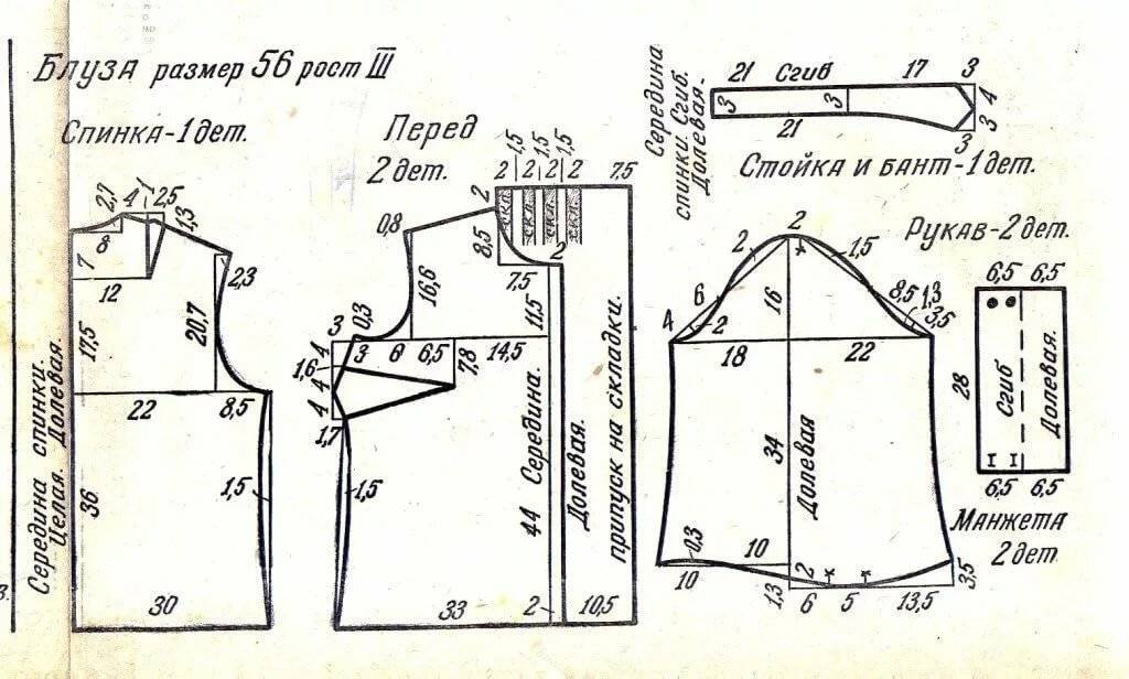 Выкройка блузки с цельнокроеным рукавом