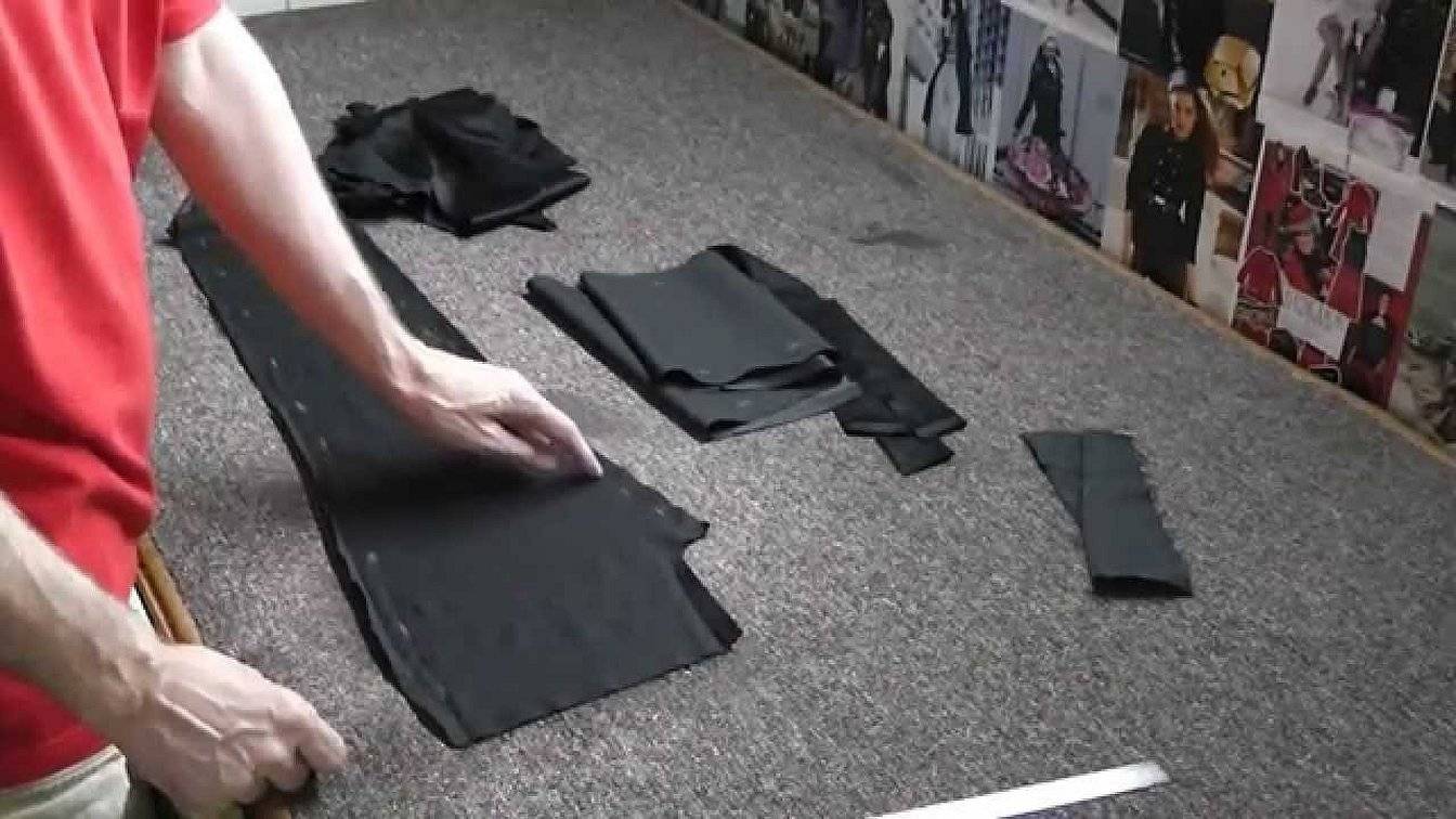 - Бывшие штаны ровно раскладываются на твердой поверхности внахлест по переднему шву.