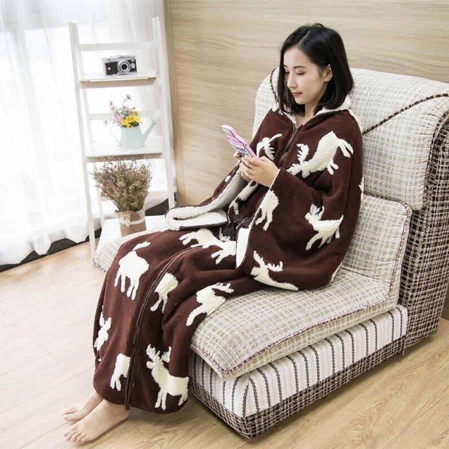 Когда вы ходите или сидите в халате, не заметно, что ногам прохладнее, чем всем остальным частям тела, но когда вы лежите это становится очень заметно. Поэтому халат из пледа – универсальное решение этой проблемы.