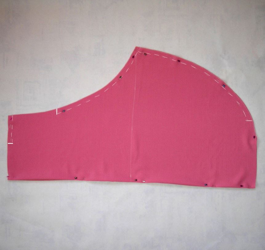 - Протяните будущий лиф наискосок и заведите за шею. Оберните вокруг шеи и протяните наискосок к противоположной стороне от той, с которой примётывали