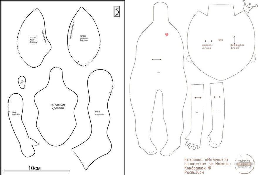 Выкройка куклы для кукольного трикотажа, в голову зашивается пенопластовый шар