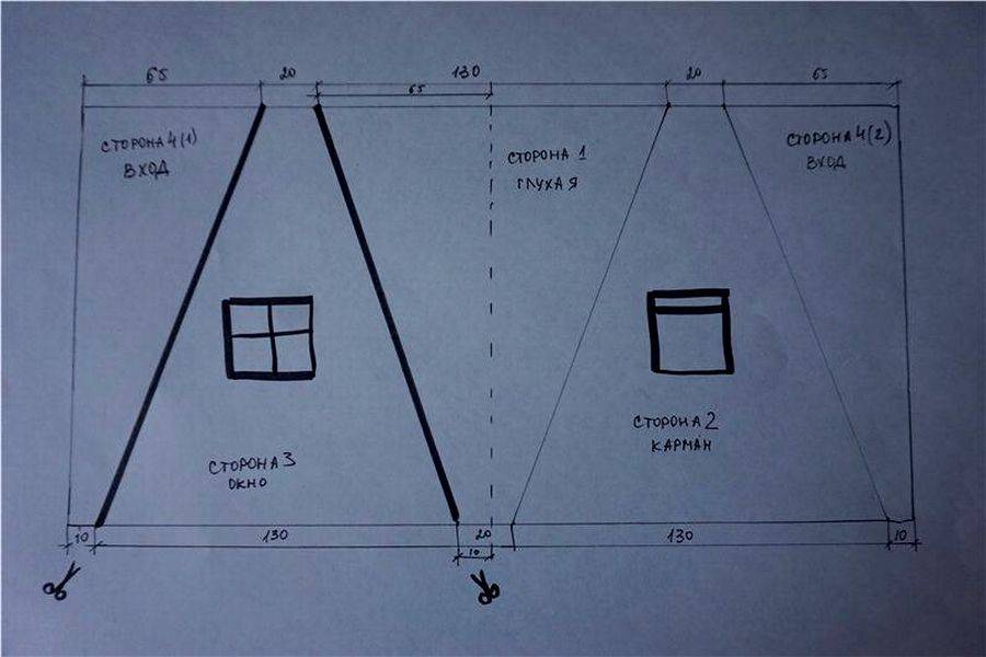 Выкройка вигвама с припусками и без, чтобы сшить своими руками.