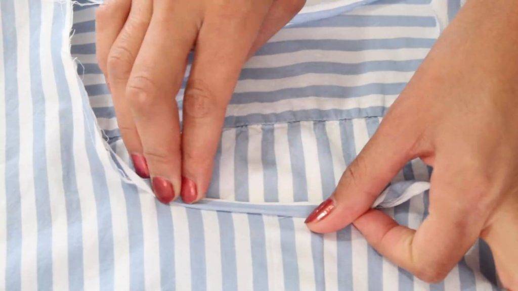 - Обработка продольных швов на руках и вшивание их в проймы;