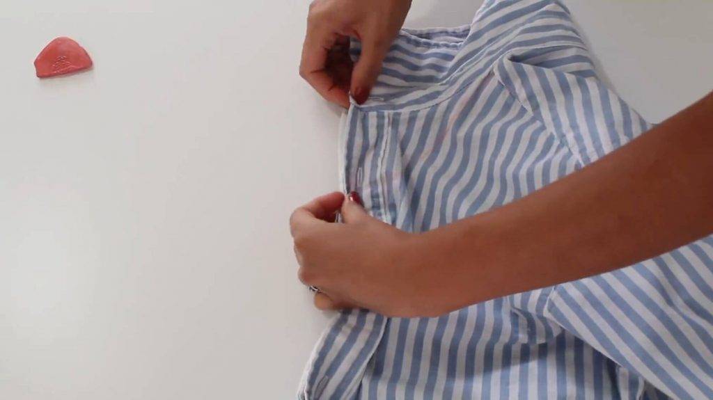 Подарить новую жизнь мужской рубашке можно и с помощью удаления рукавов в верхней части