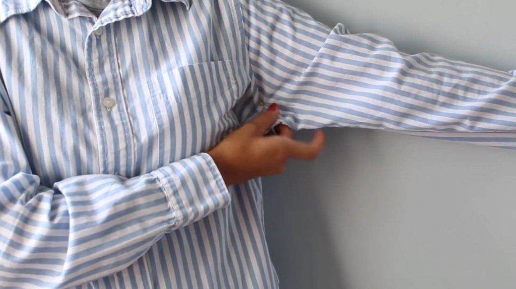 Далее нужно сделать обязательно обхват рук в районе бицепса. Рука не должна быть в напряжении. Затем идет измерение запястья, если рубашка будет длинной. Еще одна важная мерка — длина рукава и длина всего изделия (измерение по спине)