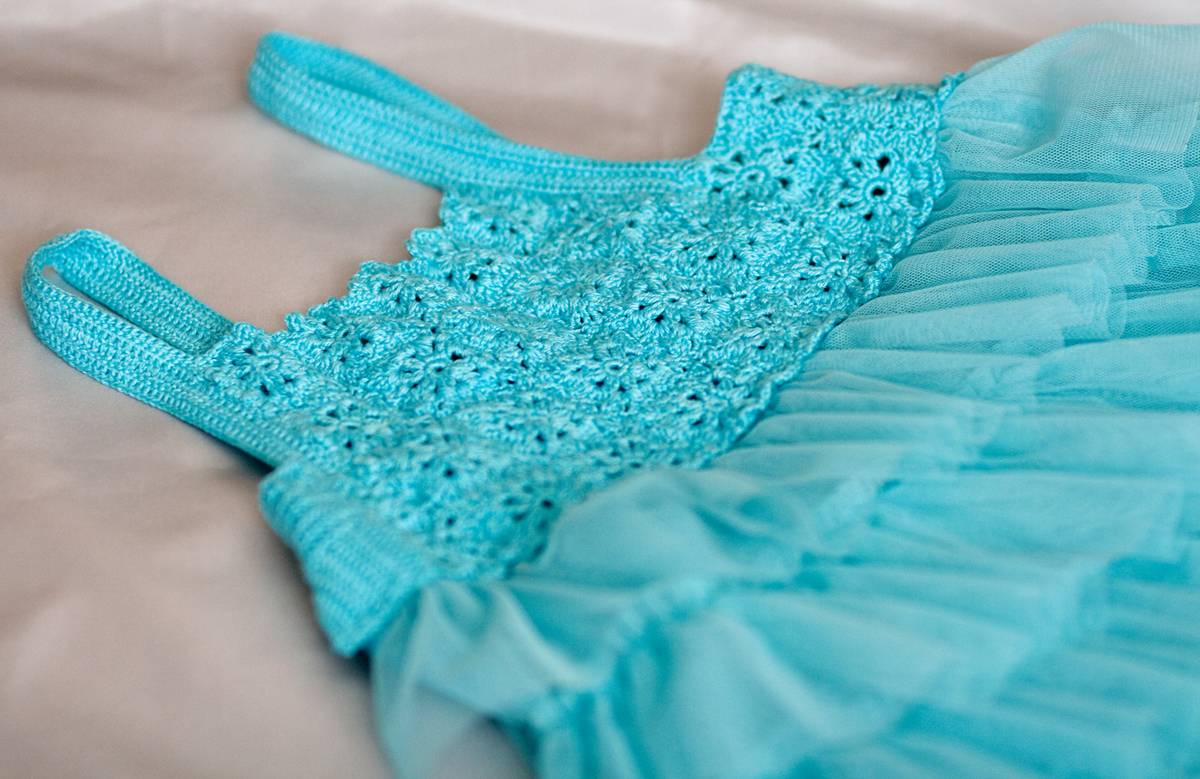 Платьице хорошо подойдёт на размер 92 и больше. В нашем случае лиф и юбочка идут раздельно для удобства одевания, однако в ходе работы их можно сшить, сделав платье цельным.