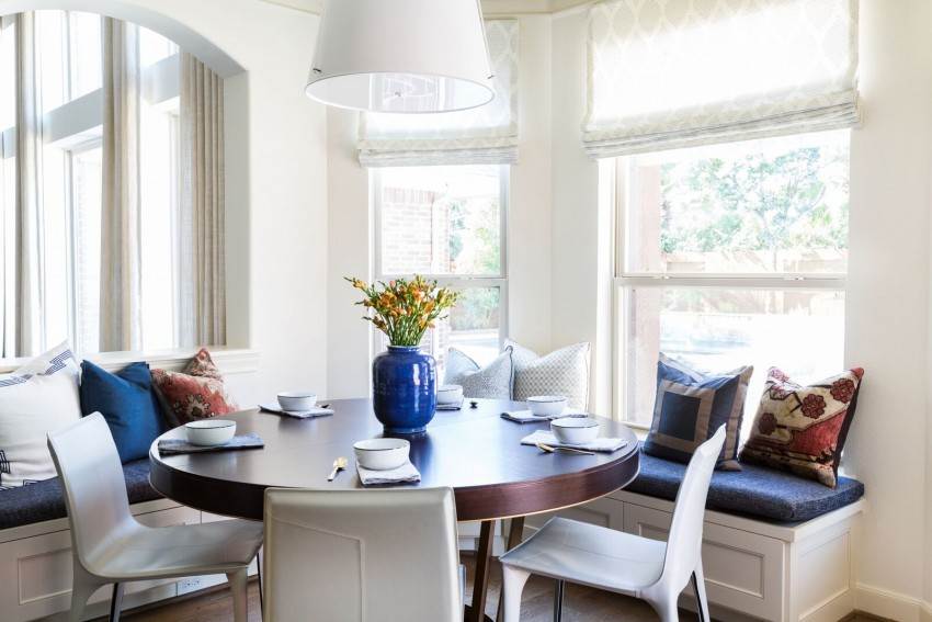 Для кухни выбирайте материалы, которые выдерживают частые стирки, не впитывают запахи и отталкивают грязь и воду. Лучший вариант – синтетические ткани.