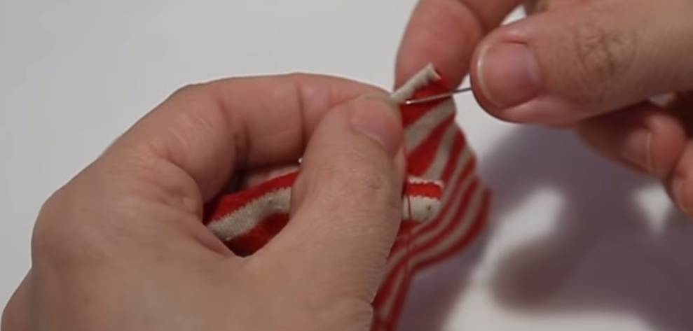 - Иголкой и ниткой сметываем детали одежды.