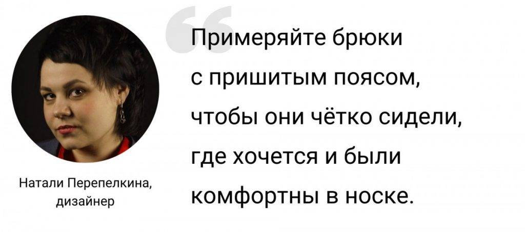 При заметном переходе от талии к бедрам (если разница более 25-30 см) и их округлости, лучше всего носить расклешенные или брюки зауженного фасона.