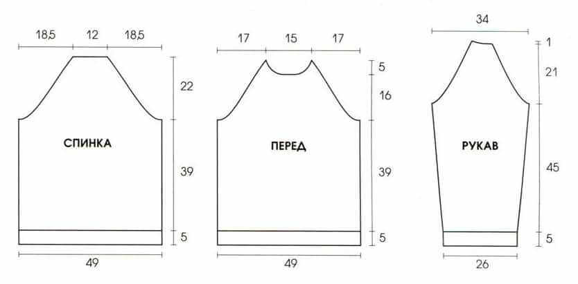 Выкройка простейшая, проверенная. Я сшила по этой схеме массу джемперов и толстовок, на разные размеры и всегда была довольна результатом. Размеры проставлены на схеме, вам необходимо только расчитать ширину выкройки по линии груди: Полуобхват груди (ОТ) : 2 + 2-4 см — прибавка на свободное облегание. Например, для размера 44 (Обхват груди 88) ширина составит 24 см.