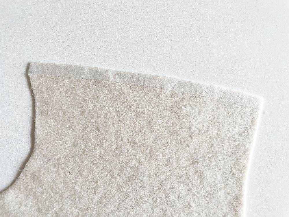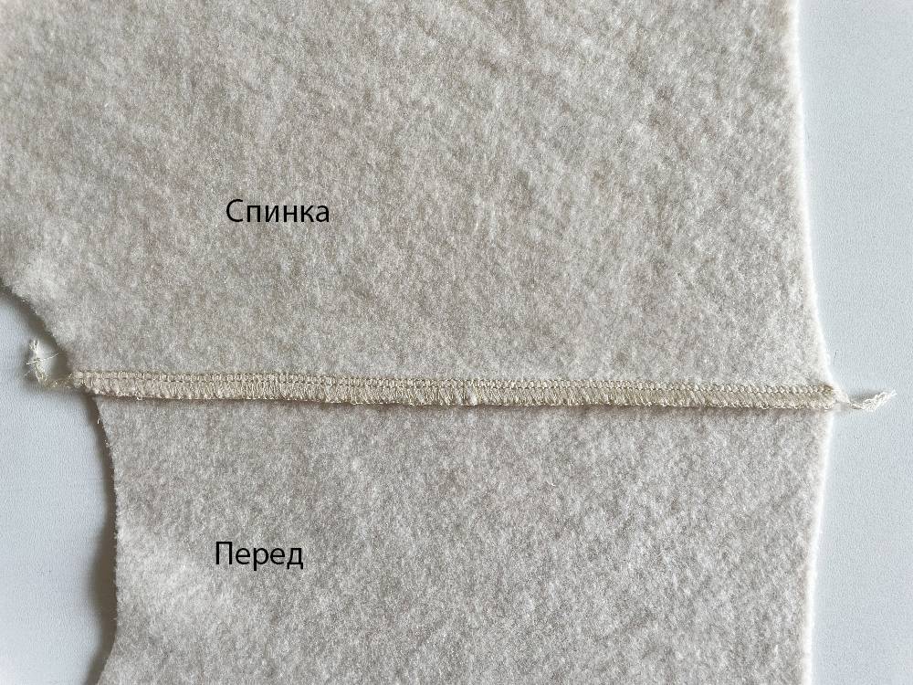 Учитывая, что футер и флис — плотные ткани, рекомендуем подвернуть припуски швов, чтобы они не мешали малышу при носке изделия. Подворачиваем припуски в сторону рукавов и отстрачиваем их по лицевой стороне, проложив строчку на расстоянии 2…3 мм от шва притачивания.