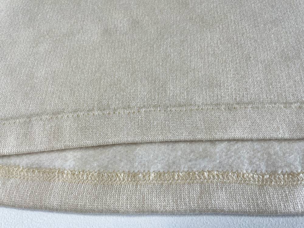 Обработать нижние срезы свитшота. Здесь нет никаких жёстких правил. Счастливые обладатели плоскошовных машин подогнуть край и подошьют его специальным швом. Если машинка простая бытовая, то вполне годятся швы зигзаг или другие трикотажные швы, — их в современных машинках всегда несколько разновидностей