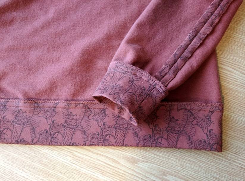 - Прошить второй манжет таким же образом, а также резинку по низу свитшота и на горловине по желанию.