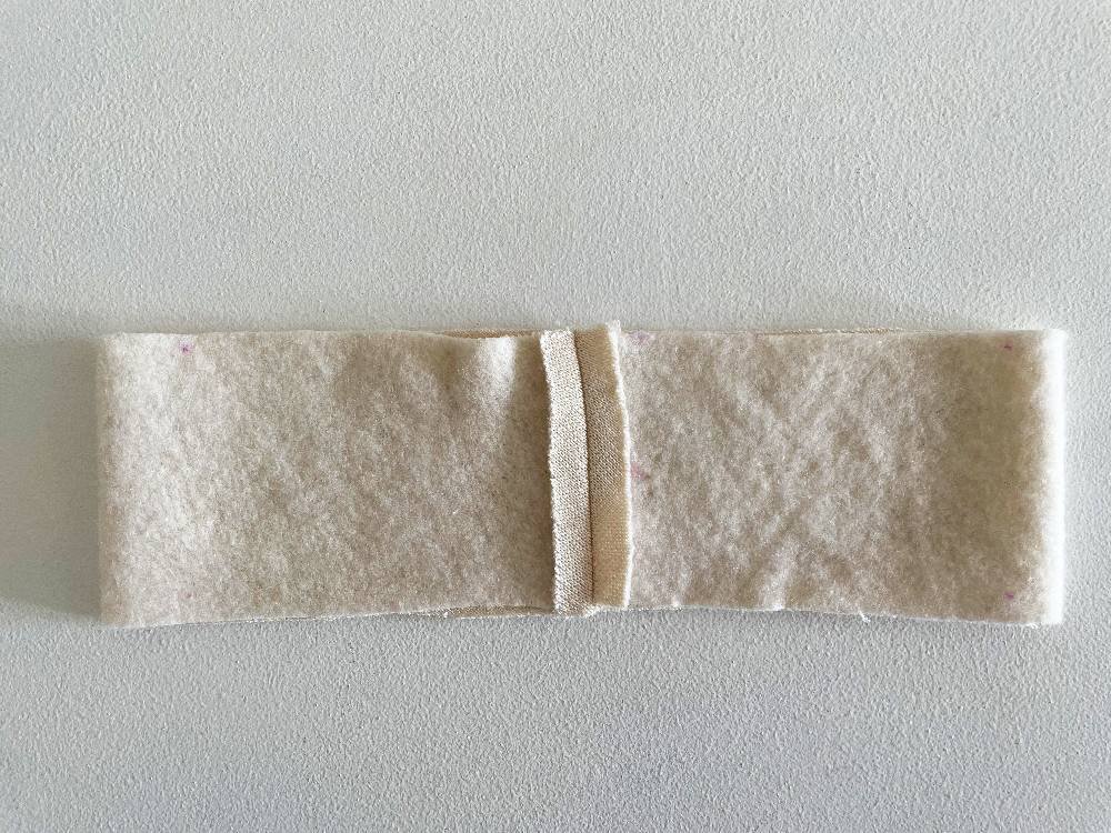 - Прошить резинку по бокам и согнуть ее так, чтобы ее шов был внутри.