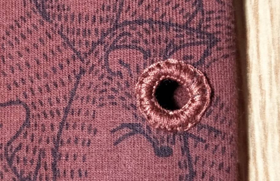 - Для сохранности отверстия для шнура можно закрыть специальными металлическими кольцами или же просто прошить мелкой строчкой.