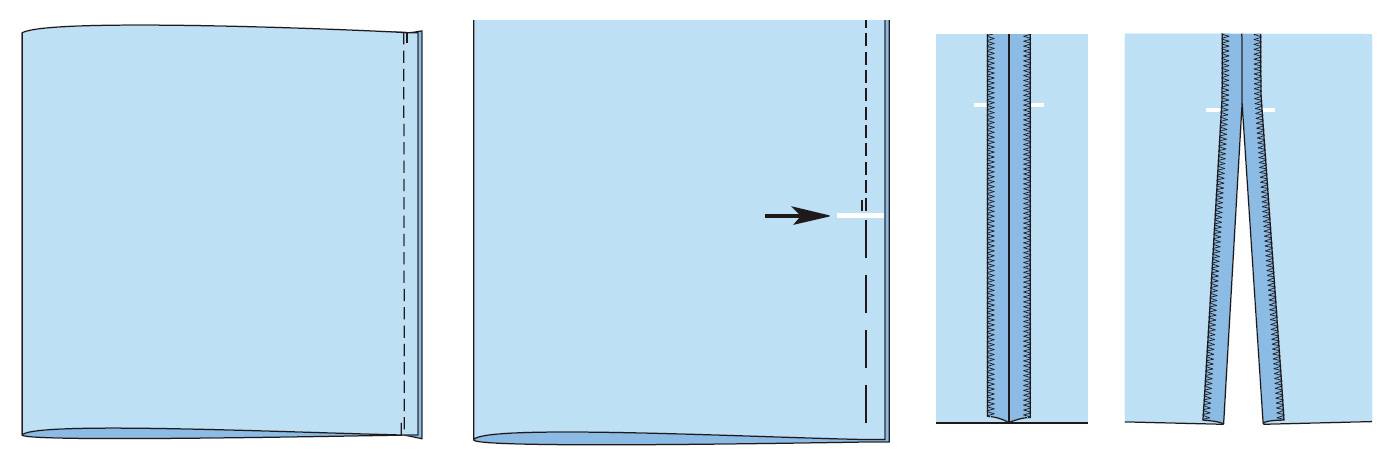 Каждый припуск обметать зигзагообразным стежком сверху донизу, разутюжить. Строчку вдоль разреза удалить – в результате получится красивый, правильно приутюженный разрез.