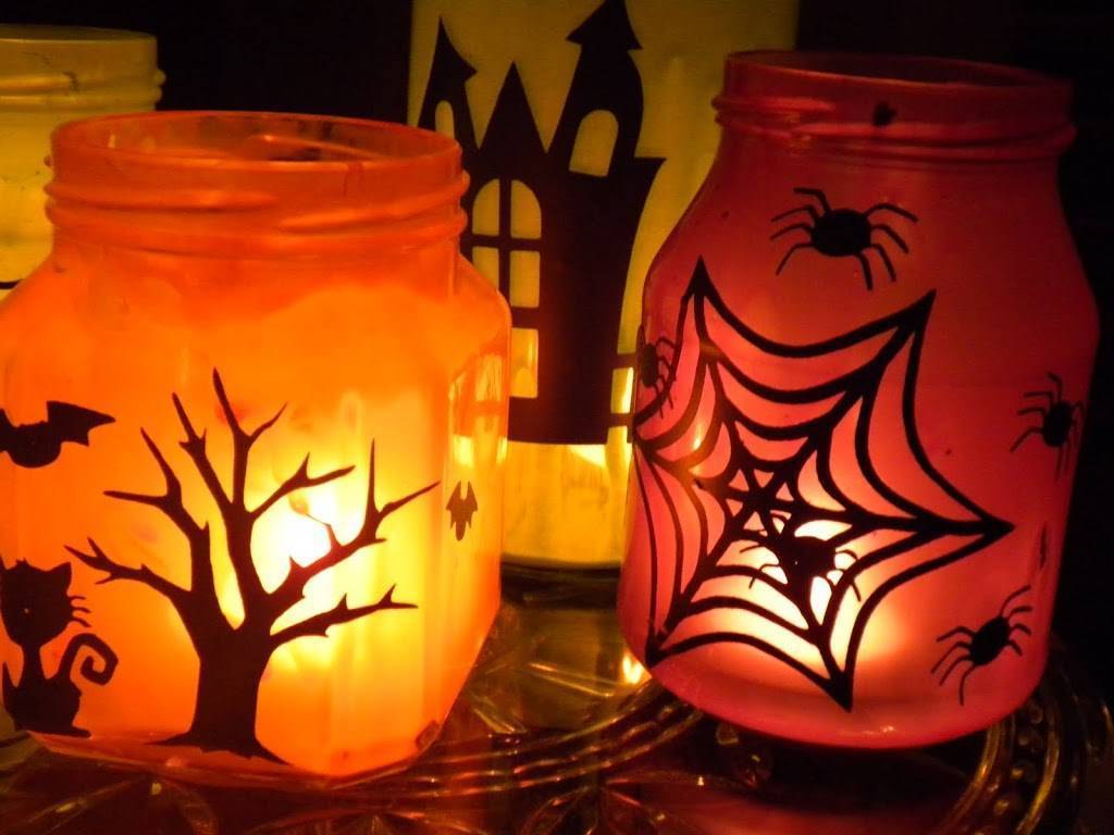 Из стеклянной банки или декоративного колпака-клоша получится неповторимая интерьерная поделка. Что там будет, решайте сами. Можно воспользоваться этой идеей и создать деревце, на котором вольготно расположились несколько призраков.