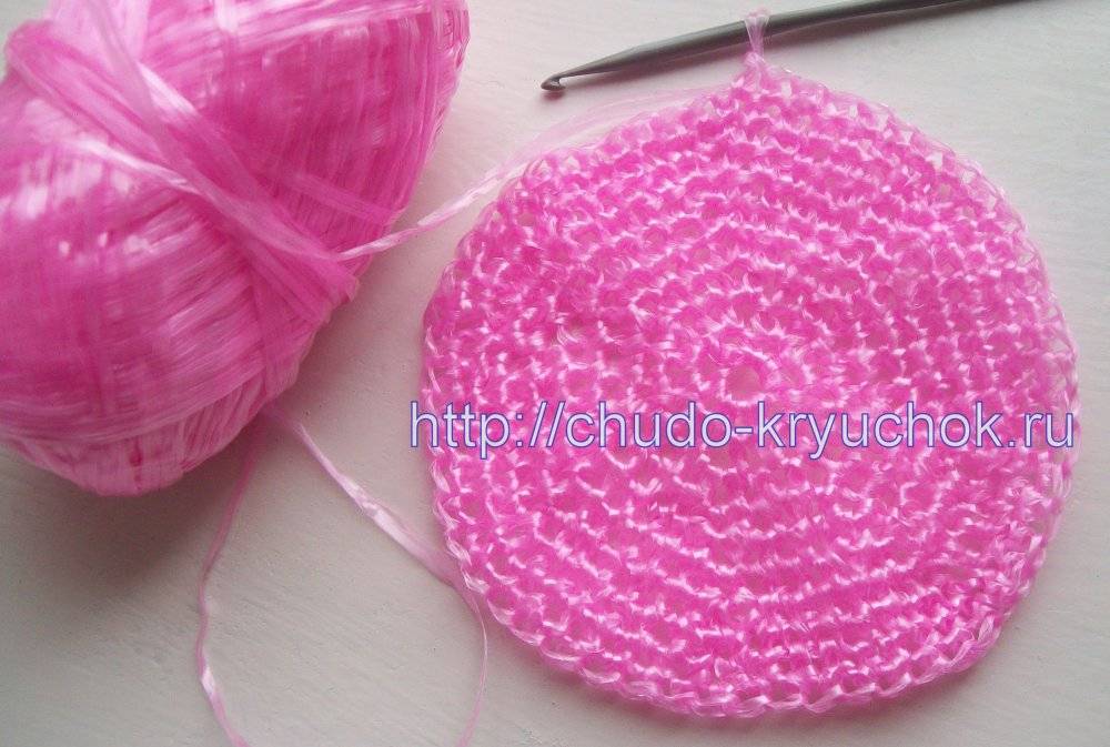 С помощью самых простых схем вяжут мочалки при помощи обычного крючка по кругу. Такое вязание сделает мочалку прочной и удобной в эксплуатации, кроме того – не нужно будет ее сшивать.