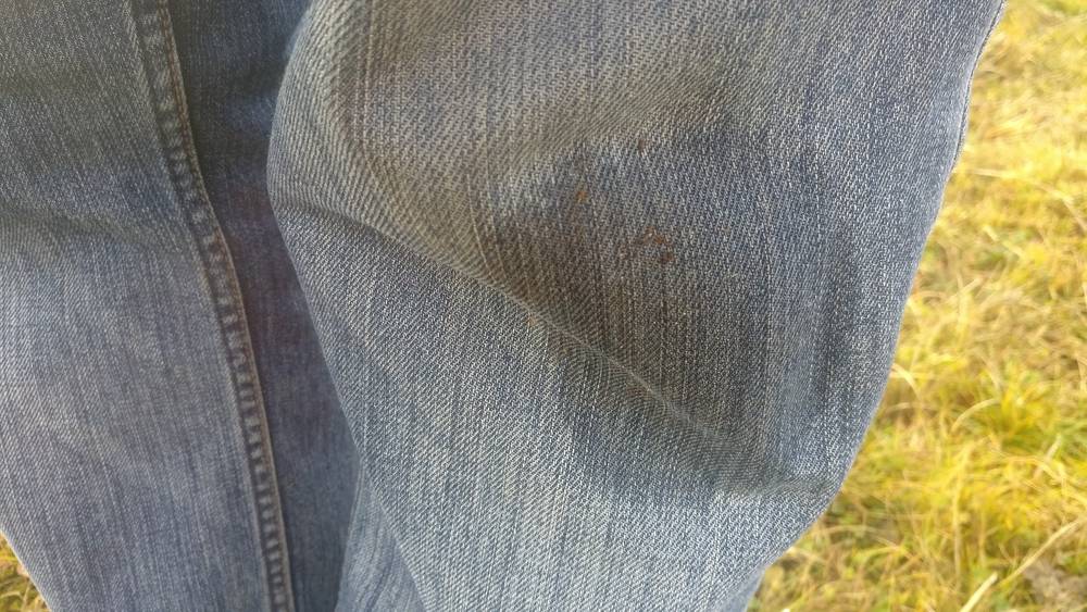 Джинсовая ткань, хоть и натуральная, отличается высокой плотностью переплетения волокон. Выведение жирных пятен с применением мягких средств (например, геля для мытья посуды) будет малоэффективным.