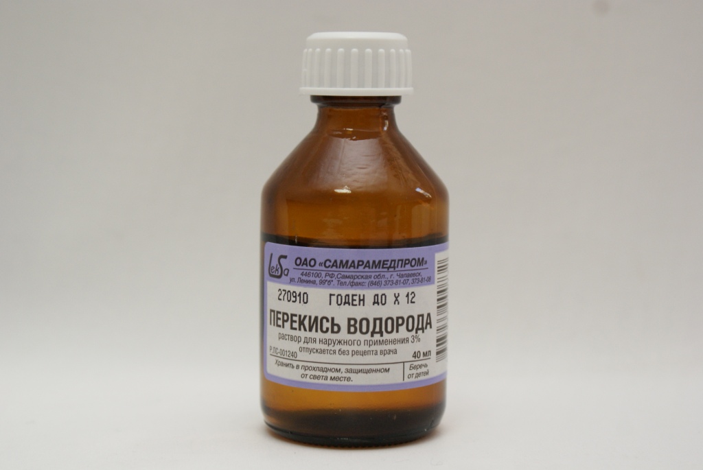 - Смочите небольшой кусочек ваты или марли 3% раствором перекиси водорода.