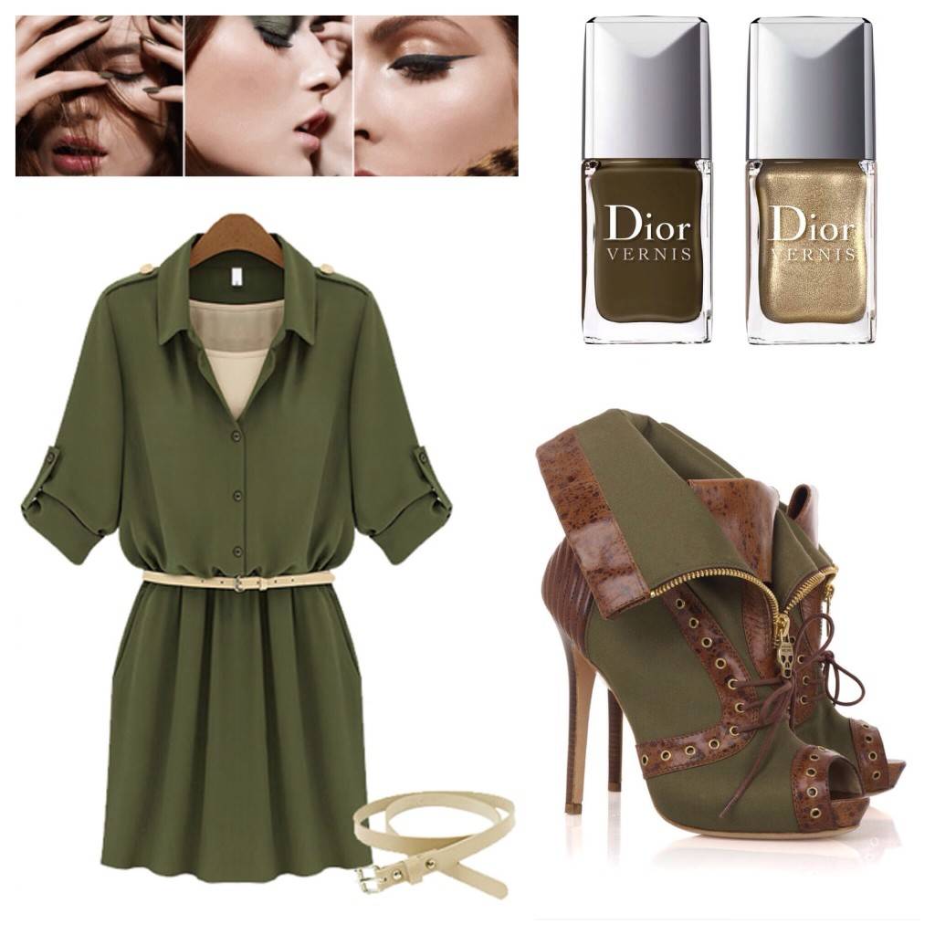Желание выглядеть стройнее и подтянутее, подталкивает многих женщин приобретать вещи и обувь черного цвета. Но для одежды в стиле милитари характерна расцветка хаки и именно это дизайнерское решение придает женскому образу большей сдержанности.