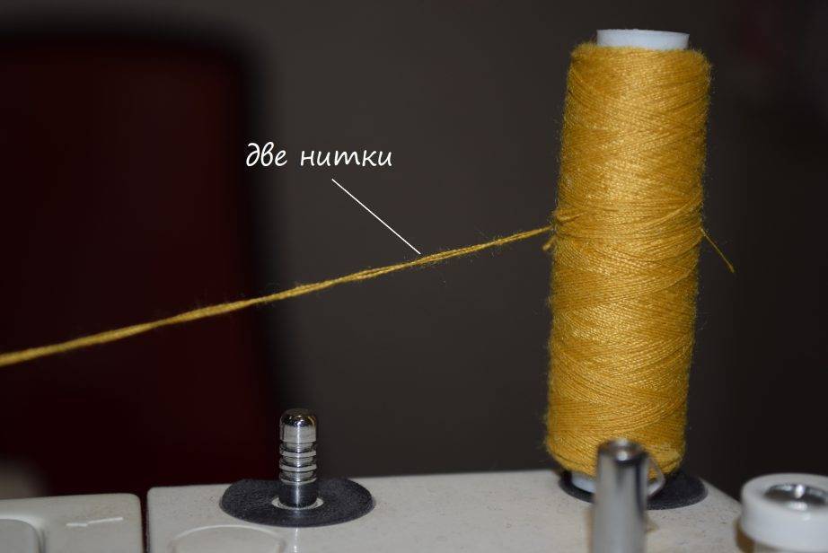7. У меня нет толстой нитки, которой были сделаны фабричные отделочные строчки на джинсах. Поэтому наматываю на катушку двойные нитки желтого цвета.