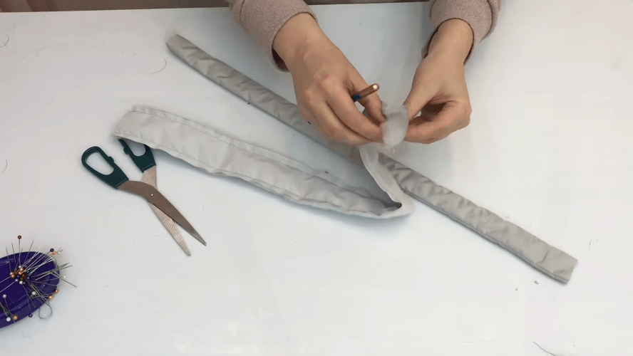 3. Подготавливаем обтачку. Она представляет собой прямоугольник, проклеенный клеевой прокладкой.