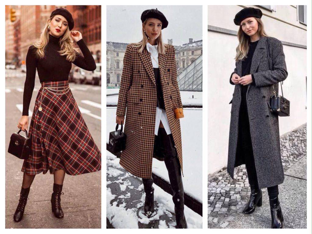 Если после распродаж у вас появились брюки в черно-белую клетку, но вы все еще не придумали, как их носить, то черная водолазка и берет решат эту проблему. Рубашка в клетку (особенно сложного фасона) в дуэте с беретом также добавит кокетливости и визуально омолодит вас на пару-тройку лет.