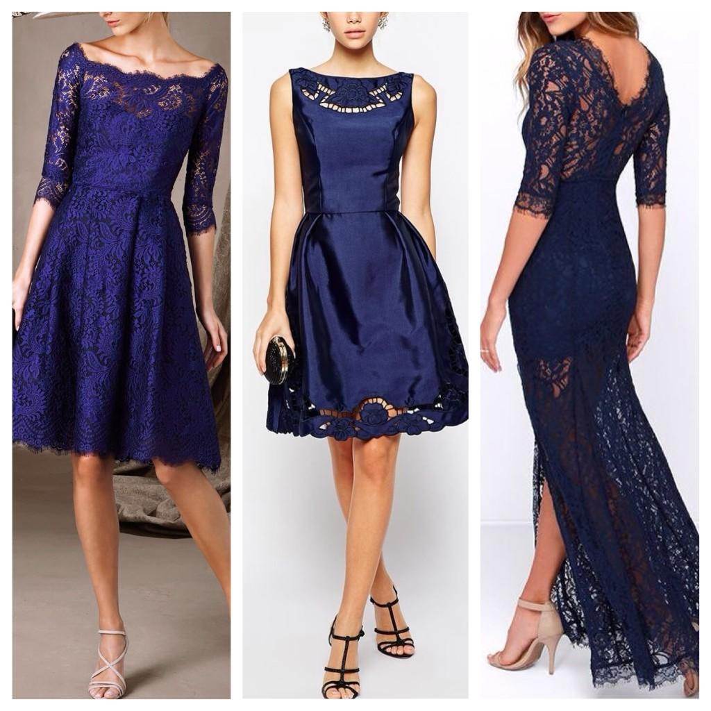 Синее платье из легкого, летящего материала или кружевное хорошо сочетается с туфлями на шпильке. К изделию из более плотной ткани подходит массивный каблук. Вечерние наряды длиной в пол сочетаются с изящной обувью на достаточно высоком, средней толщины каблуке.