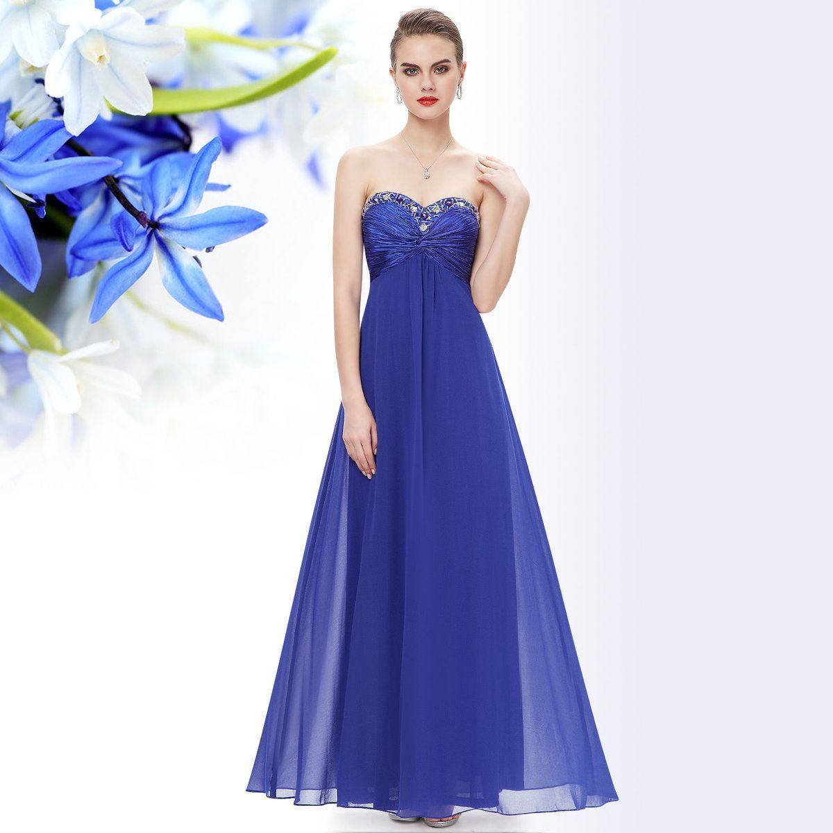 Платье с завышенной талией, где юбка начинается у бюста – именно тот фасон, который покажет красоту и насыщенность синего цвета.