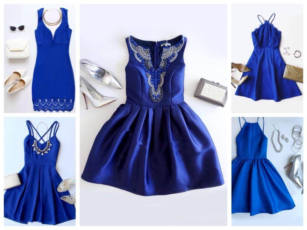 Синее короткое платье – объемная категория женской одежды, в которую включается офисные модели, пышные платья для выпускного вечера, летние модели. Оттенок настолько насыщенный и гармоничный, что может стать цветовым решением для большинства популярных фасонов.