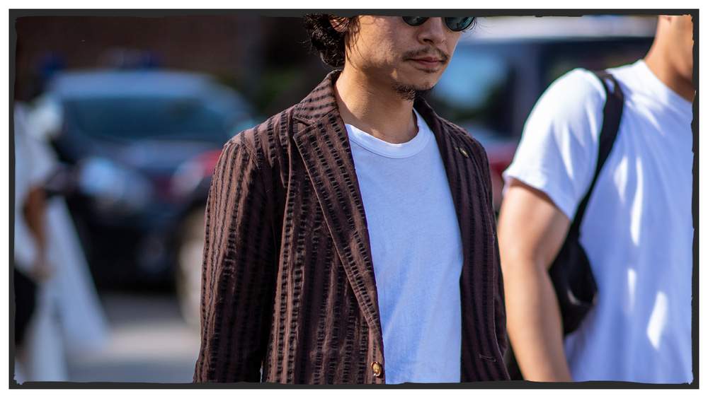 Правильно подобрать коричневый пиджак для лета – дело нелегкое. Пожалуй, лучше всего подойдет что-то облегченное, например, индийская жатая ткань в полоску с перманентными морщинами. Она не лежит плотно на фигуре, за счет чего обеспечивается хорошая и приятная циркуляция воздуха. В данном случае темные полосы имеют большую ширину, благодаря чему и выделяются.