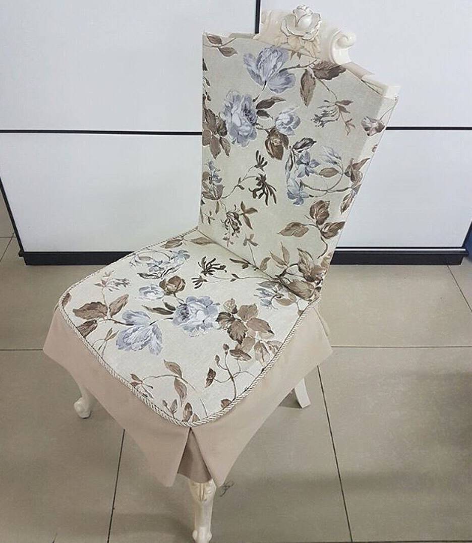 Ткань для чехлов на стулья подбирается и с учётом стилистики кухонного помещения. Помещение может быть оформлено в современном, классическом или деревенском стиле. При выборе обивки следует подбирать определённую форму накидки и текстуру ткани.
