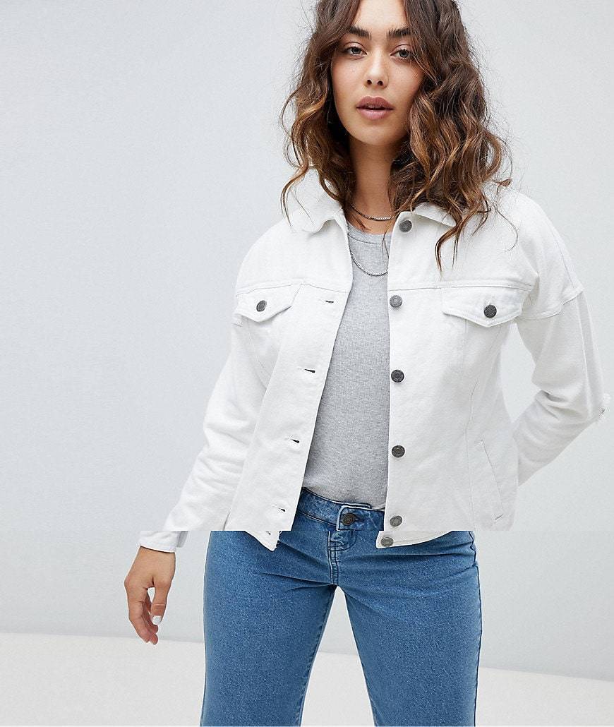 Белые джинсы и негабаритные джинсовые куртки для женщин