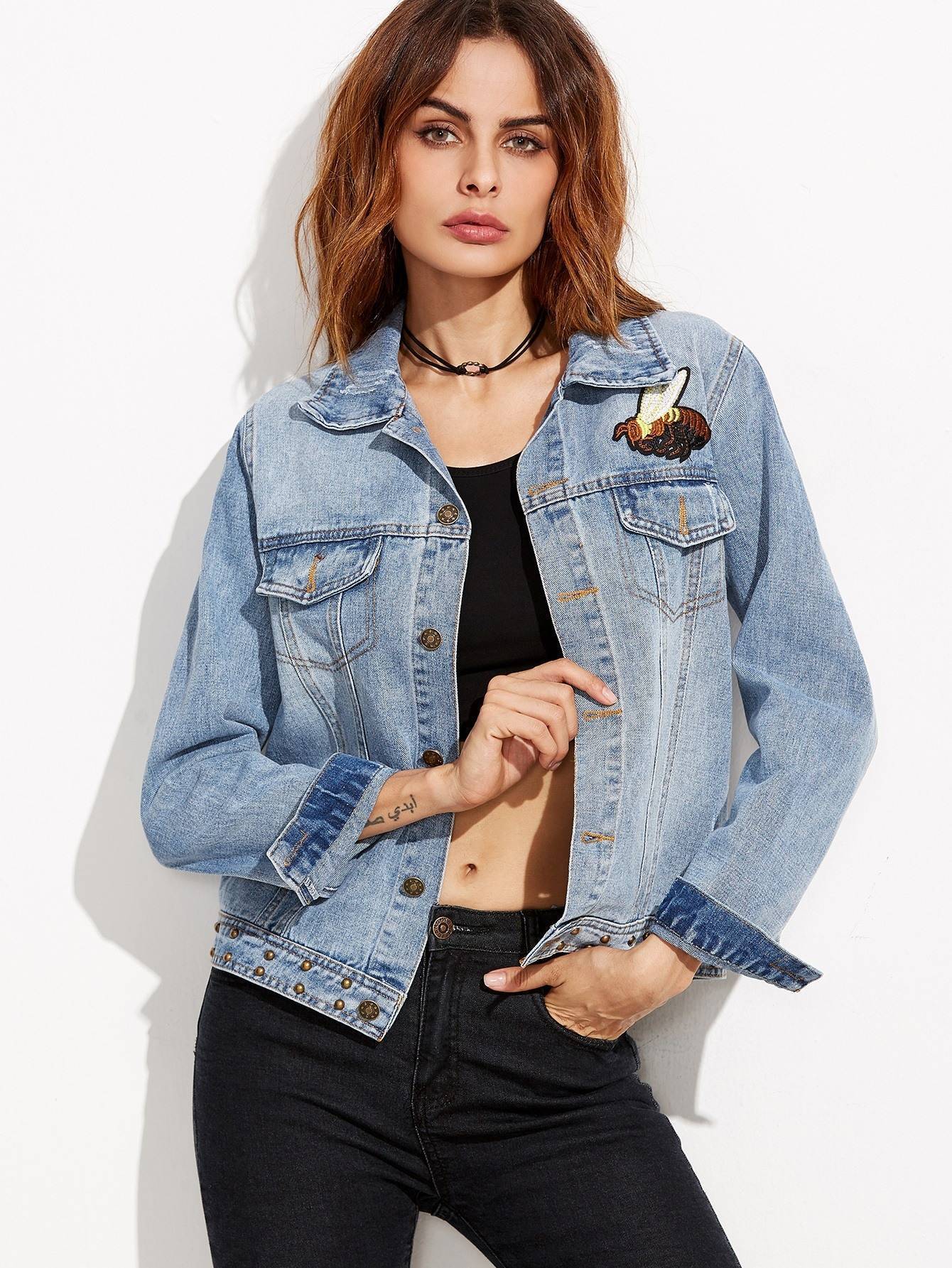 Молодёжные модели джинсовых курток разных цветов очень часто в этом году декорируются различными вставками, вышивками, стразами всевозможными металлическими фурнитурами: молниями, заклёпками, пуговицами, шипами и прочими украшениями.