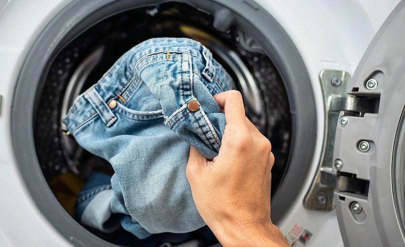 Не стоит помещать джинсы в холодную воду, полоскать лучше в теплой и сушить в сушилке или на батарее.