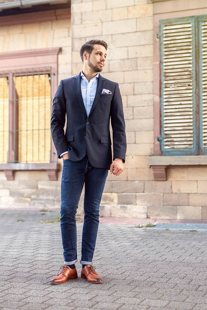 - Недопустимой ошибкой является «одолжить» пиджак у костюма. Джинсовые брюки не относятся к формальной одежде, поэтому блейзер также должен быть неформальным, чтобы весь комплект был единым.
