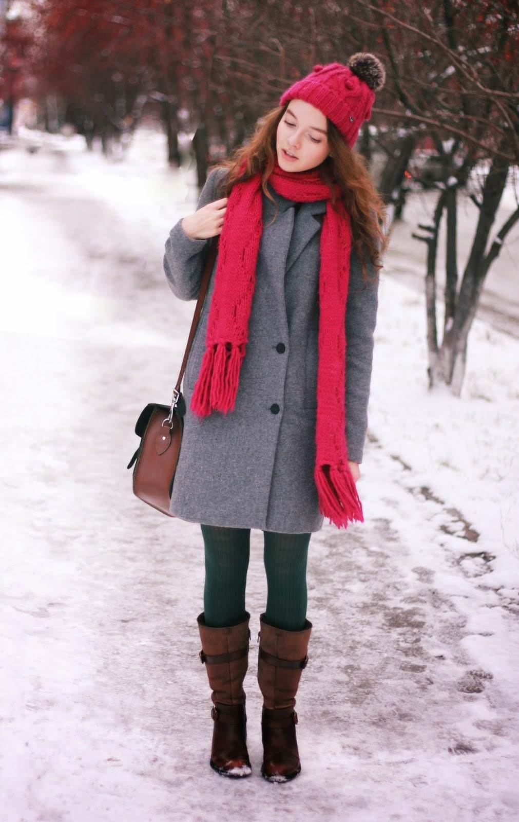 С серым пальто из буклированной шерсти, также другой верхней одеждой нейтральных цветов из подобного материала хорошо будут смотреться богато декорированные вязаные шапочки округлой либо вытянутой формы. Вы в данном случае даже можете выбрать модели, отделанные бисером или же атласными лентами.