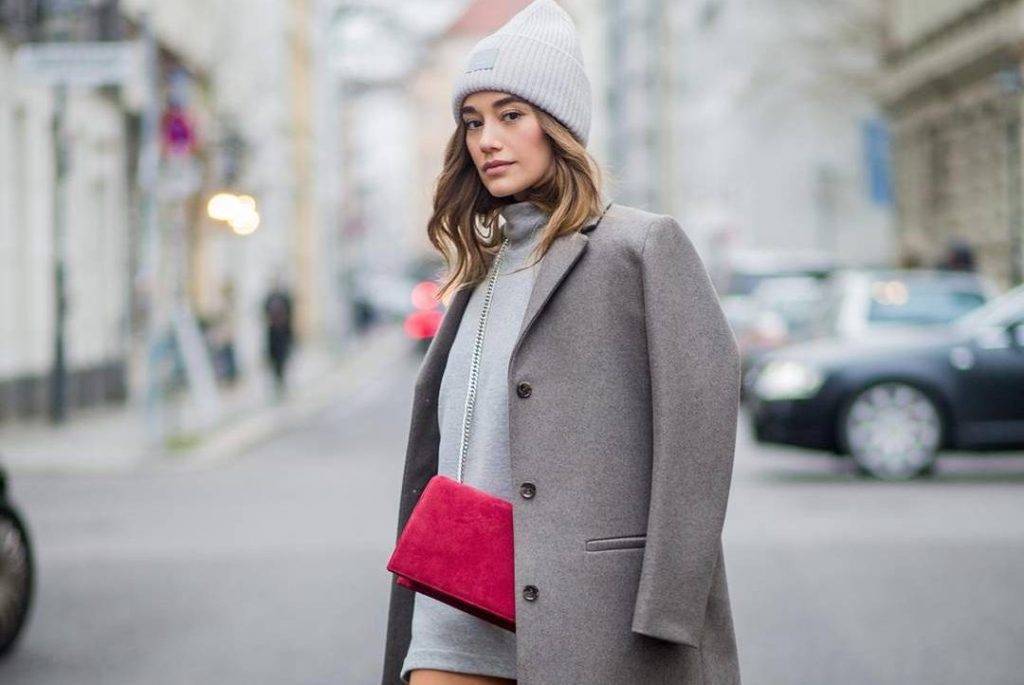 Шапка-бини и шапка-носок, модель с подворотом, фетровая шляпа и кепи – вот возможные варианты. Изделия с рыхлой вязкой и выраженным английским узором тоже допустимы, равно как и небольшие береты. Конкретный убор подбирайте, опираясь на ансамбль в целом. Например, с очень коротким, как и с очень длинным пальто типа оверсайз, хорошо смотрится фуражка. Останется дополнить образ сумкой на длинном ремешке или объёмной вариацией, плохо держащей форму.