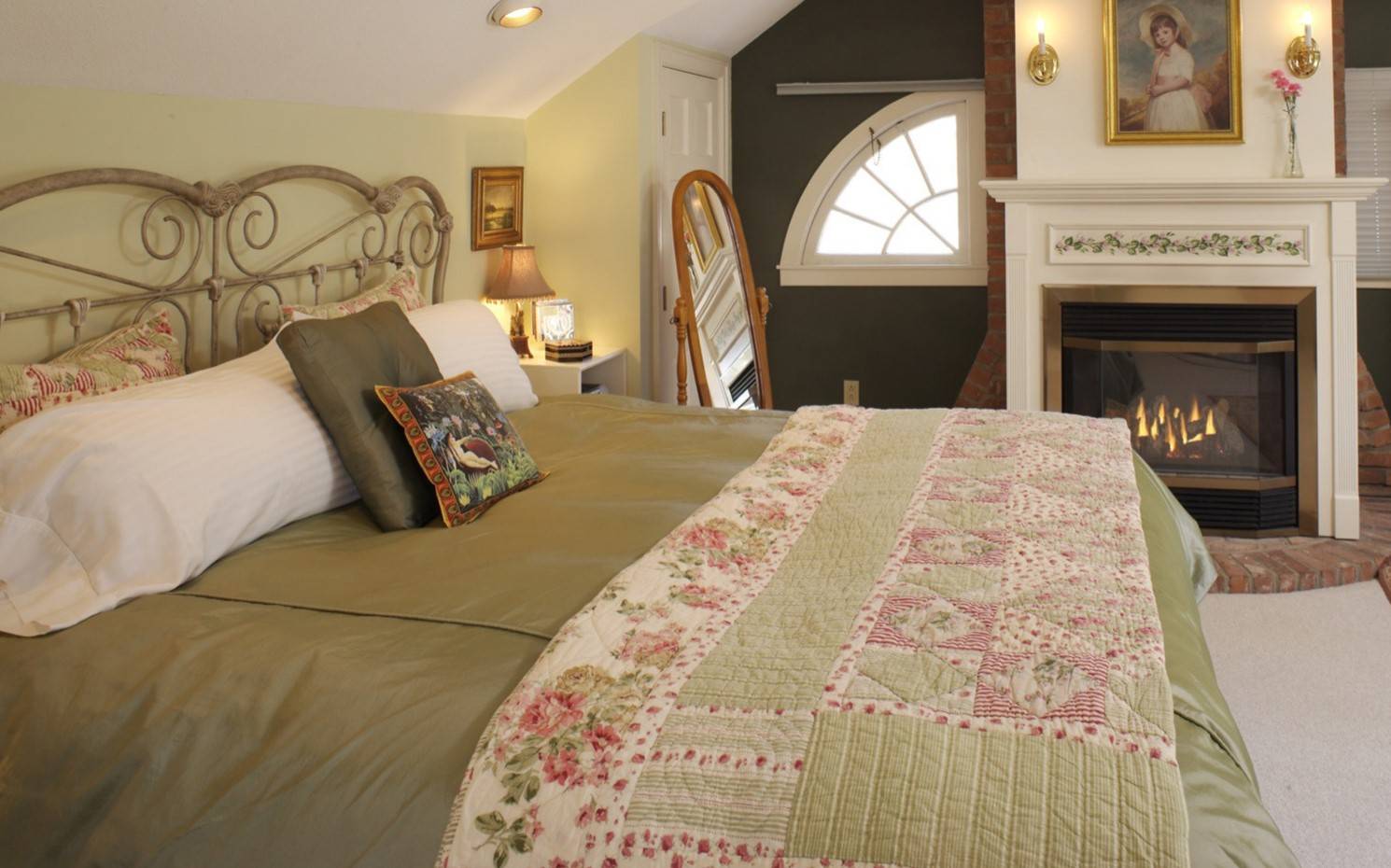 Постельное белье можно подобрать под цвет акцентной стены в спальне