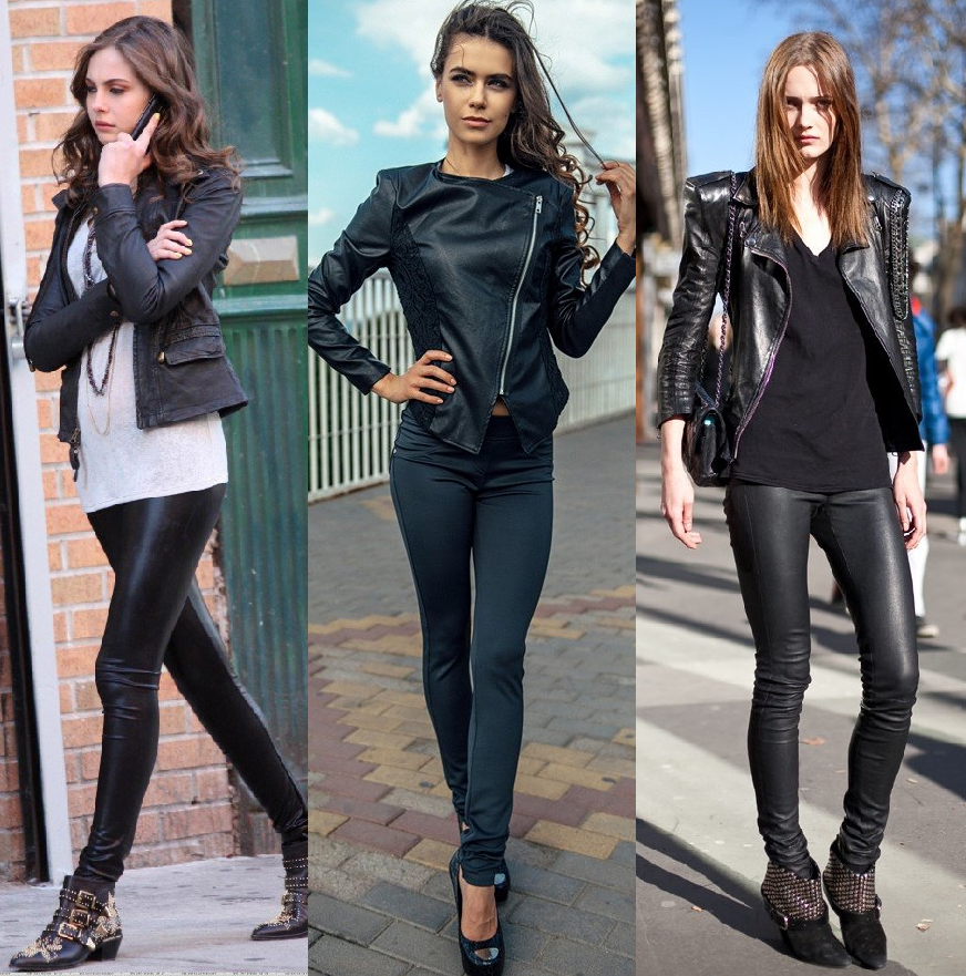 Для создания повседневного образа выбирайте узкие брюки, леггинсы или джинсы. Эти вещи будут хорошо гармонировать с кожаной курткой, лаконично дополняя друг друга. Блуза и узкие брючки с этой одеждой будут смотреться элегантно и изысканно, в отличие от привычных джинсов с потертостями и рубашкой, которые, тем не менее, рекомендуются любительницам комфорта.