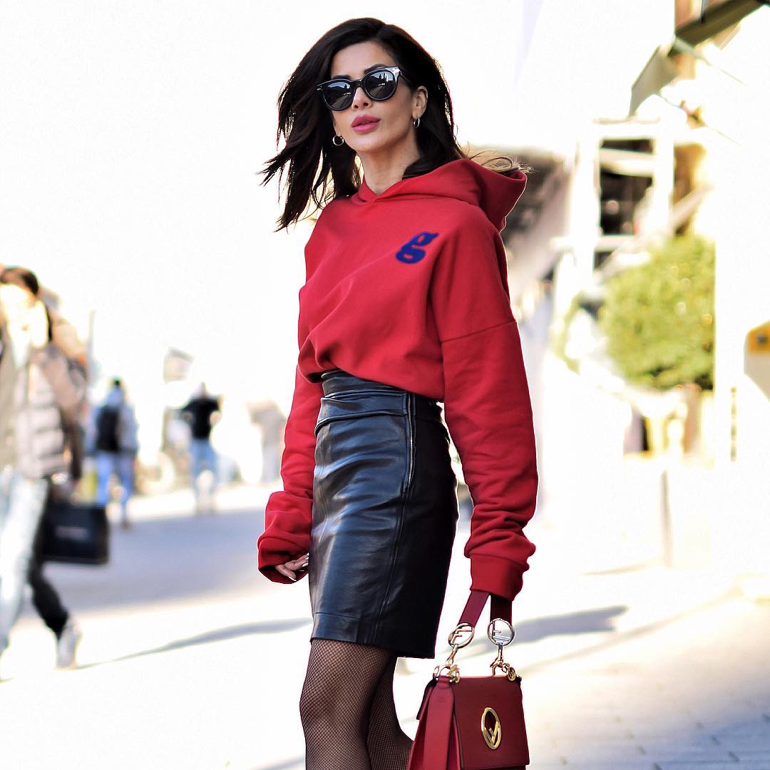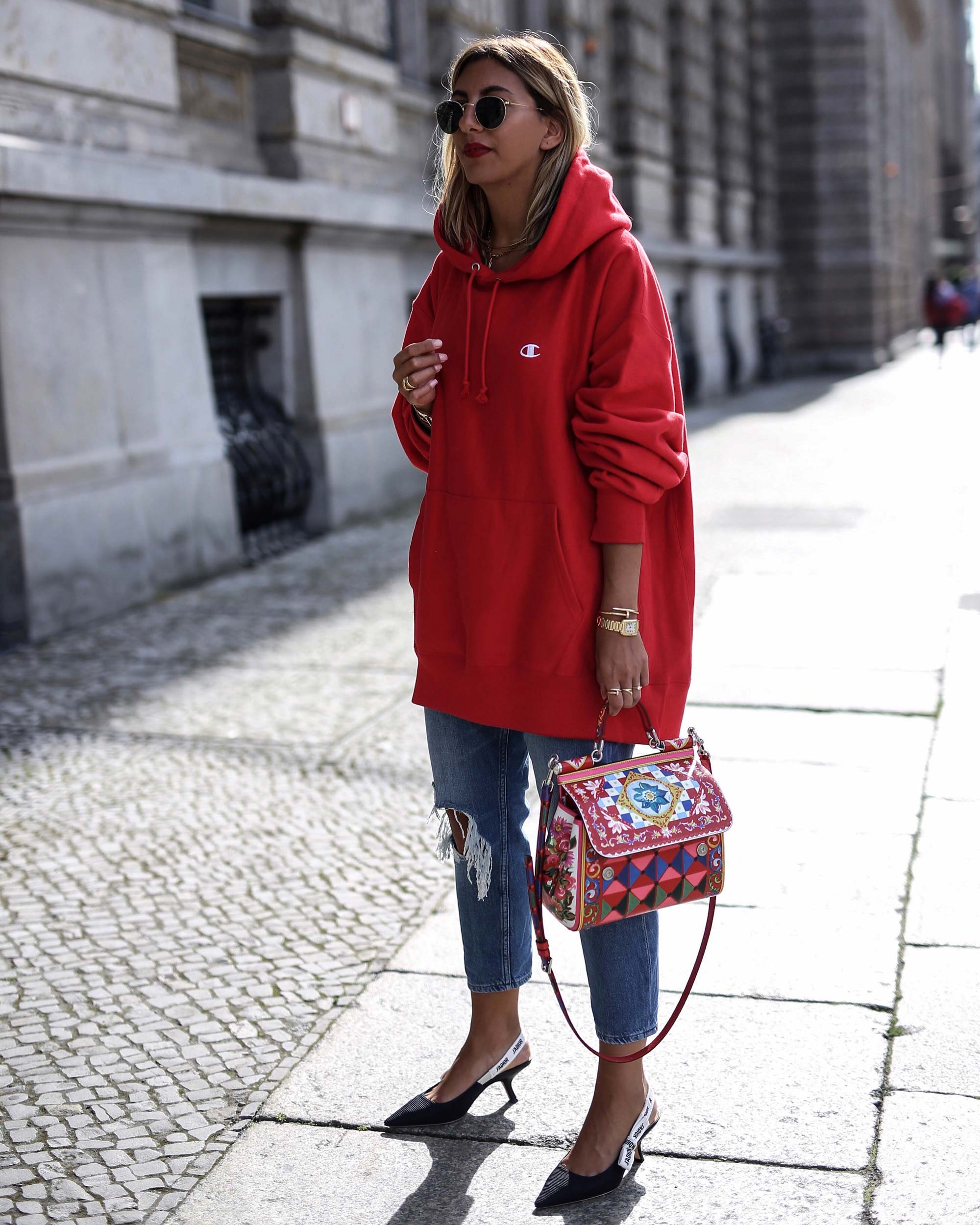 В женском гардеробе толстовка – вещь незаменимая. Однако простой лук, состоящий из толстовки и джинсовых брюк, уже не актуален. Модные девушки носят толстовки и худи поверх платьев и юбок романтичного кроя. Актуальны соответствующие головные уборы – береты и шляпки, а также лаконичные кеды. В холодную погоду объемные изделия в сочетании с пальто не дадут замерзнуть.