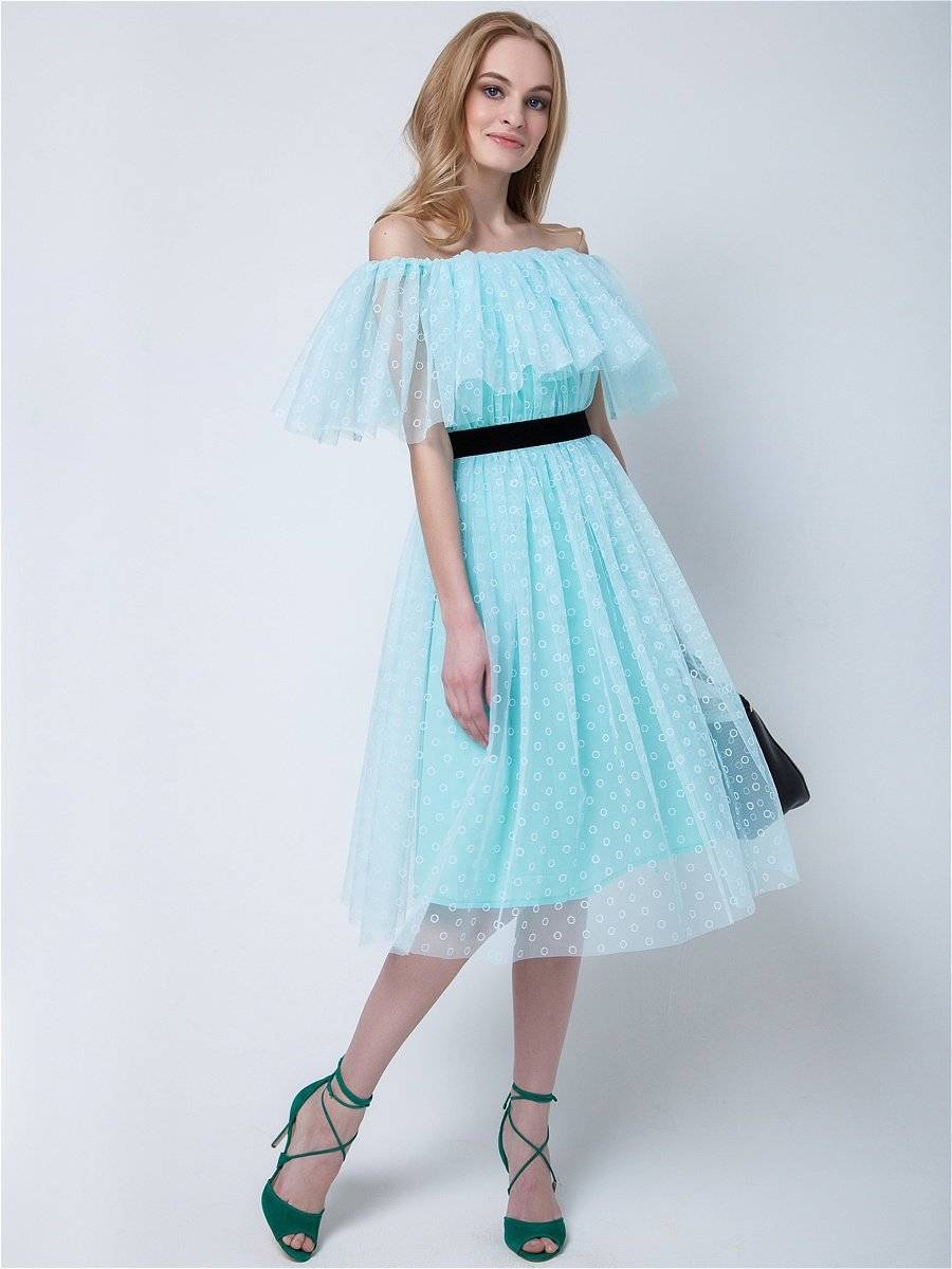 Расклешенные платья выглядят элегантно и женственно, подчеркивая тонкую талию. К пышному низу отлично подходят босоножки на шпильке, лодочки и балетки. Данный наряд выбирают для торжественных событий (выпускной, свадьба подруги) и в качестве повседневного лука. В зависимости от материала, узора на ткани и деталей (сережек, колец, браслетов), образ получится либо праздничным, либо в стиле кэжуал.