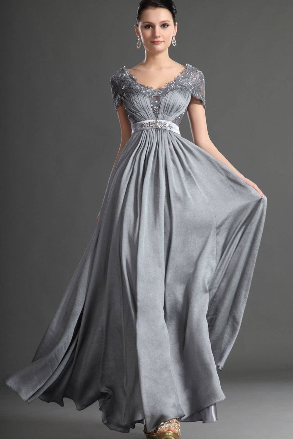 Леди подойдут платья на выход с V-образным вырезом силуэта трапециевидного, делающие фигуру стройнее. Это достижимо при помощи отделки или вертикальных узоров. Уместны модели в стиле ампир, у которых завышена талия.