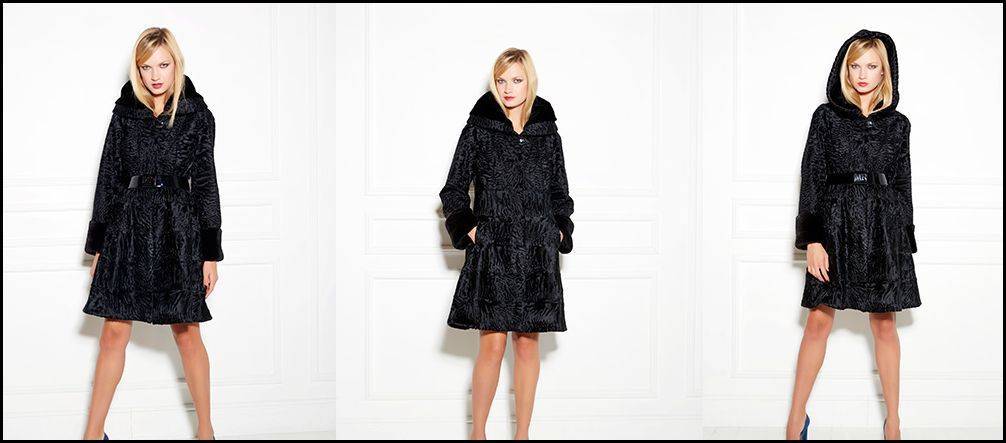 Среди стильных фасонов шуб из каракуля 2019-2019 на модных показах также широко были представлены классические черные пальто, доходящие до колена или ниже него. Такие модели, как правило, дополнены изящным пояском, украшением изделий часто служит красивый воротник, он может быть отложным или выполненным в виде стойки.