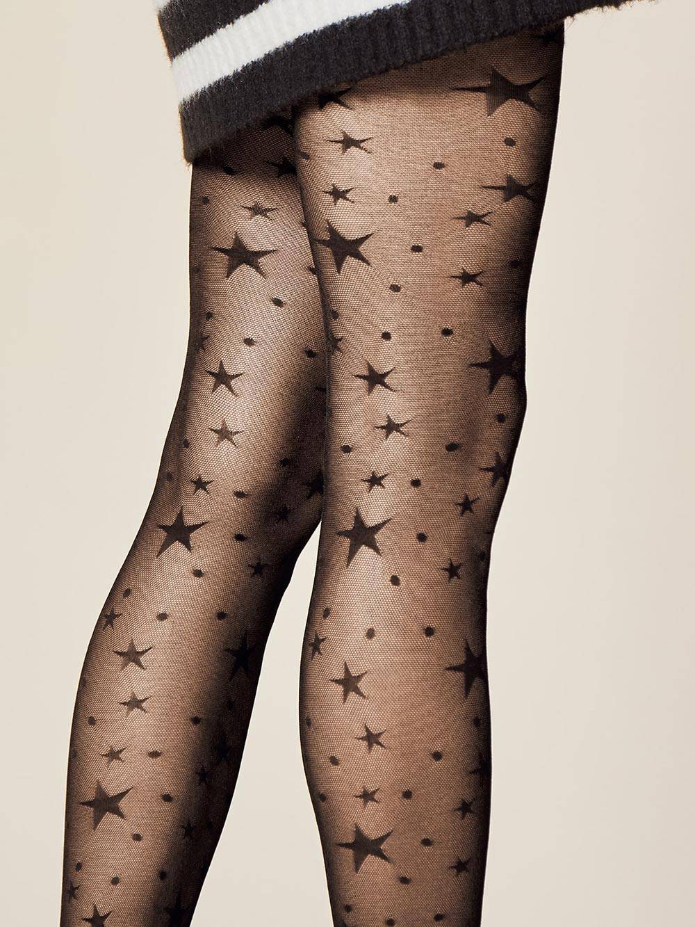 Колготки в крупные горох или с рисунком, собранным из других крупных элементов: