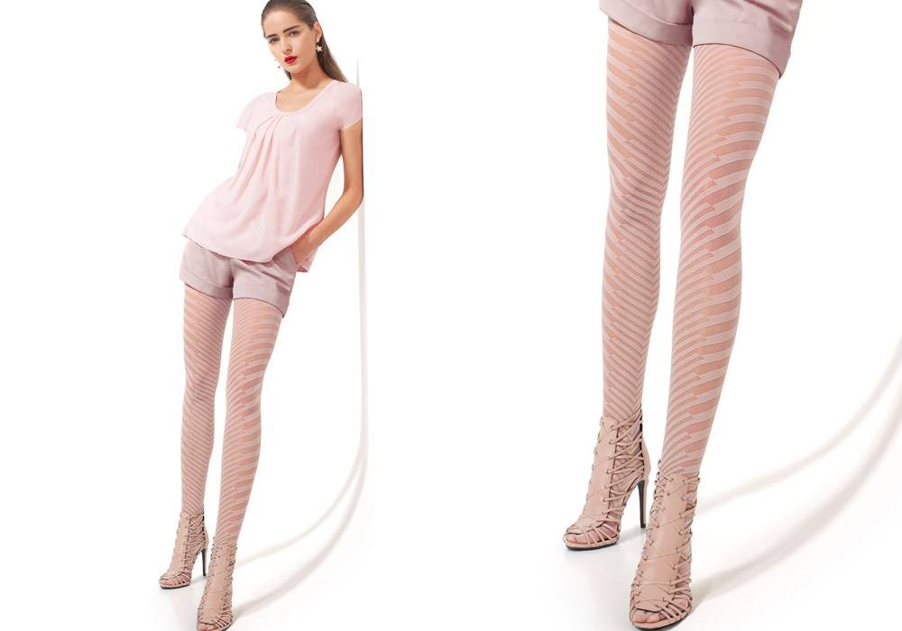 Универсальный вариант для неидельных ног — колготки с асимметричным рисунком: