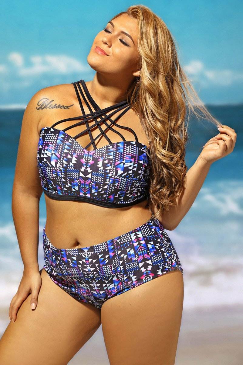 - Крупным красавицам не нужно брать слишком яркую расцветку купальника. Не рекомендованы модели с поперечными орнаментами и мелкими принтами.